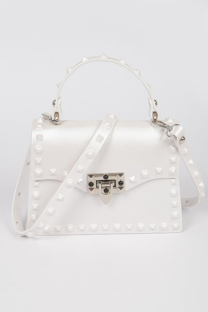 Add edge to your ensemble with the Monotone Studded Clutch. Featuring sleek faux leather and bold rivet embellishments, this clutch offers the perfect balance of minimalism and attitude. Its structured body and clean lines make it a versatile companion for day or night. Whether you're dressing up or down, this piece adds instant polish and personality.