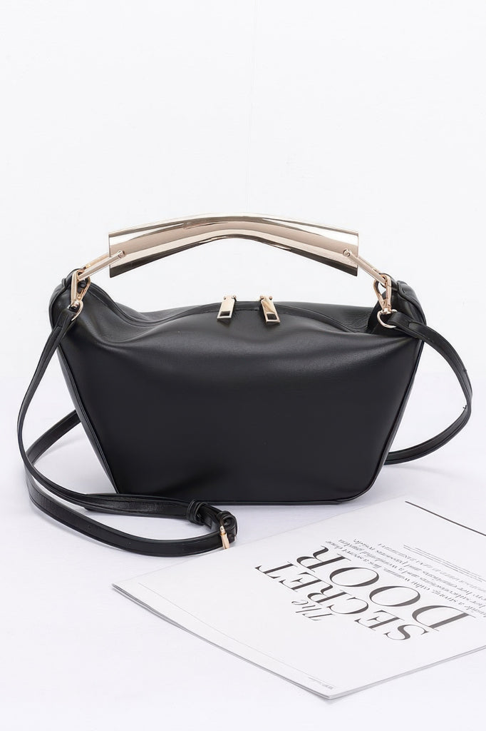 Add a touch of elegance to your accessory collection with the Faux Leather Metal Handle Bag. Order yours now and enjoy the perfect blend of fashion and function!