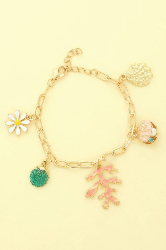 • Enamel charms: flower, scallop, reef, clam shell, and oyster