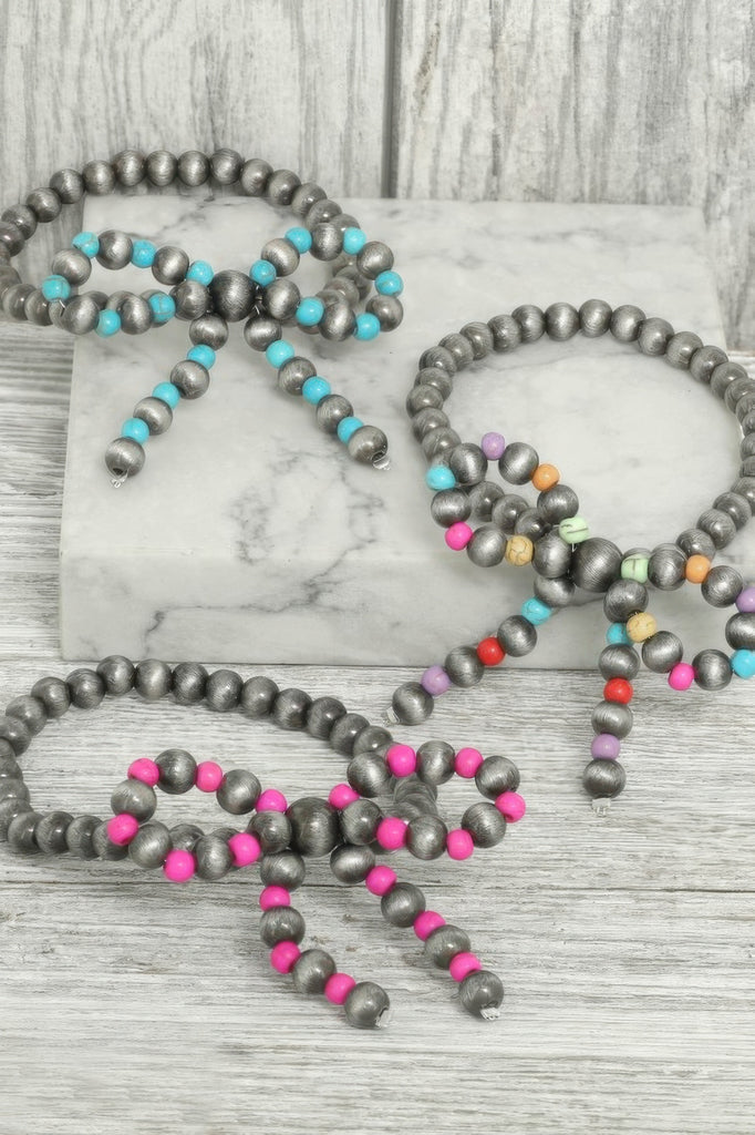 Sweet and stylish, the Western Bow Beaded Stretch Bracelet adds a feminine flair to your everyday wristwear. Featuring a charming center bow accent in various colors, this beaded stretch bracelet is lightweight, easy to slip on, and perfect for day-to-night outfits. Whether worn solo or stacked, it’s a pretty pick for teens, bridesmaids, or boutique shoppers.