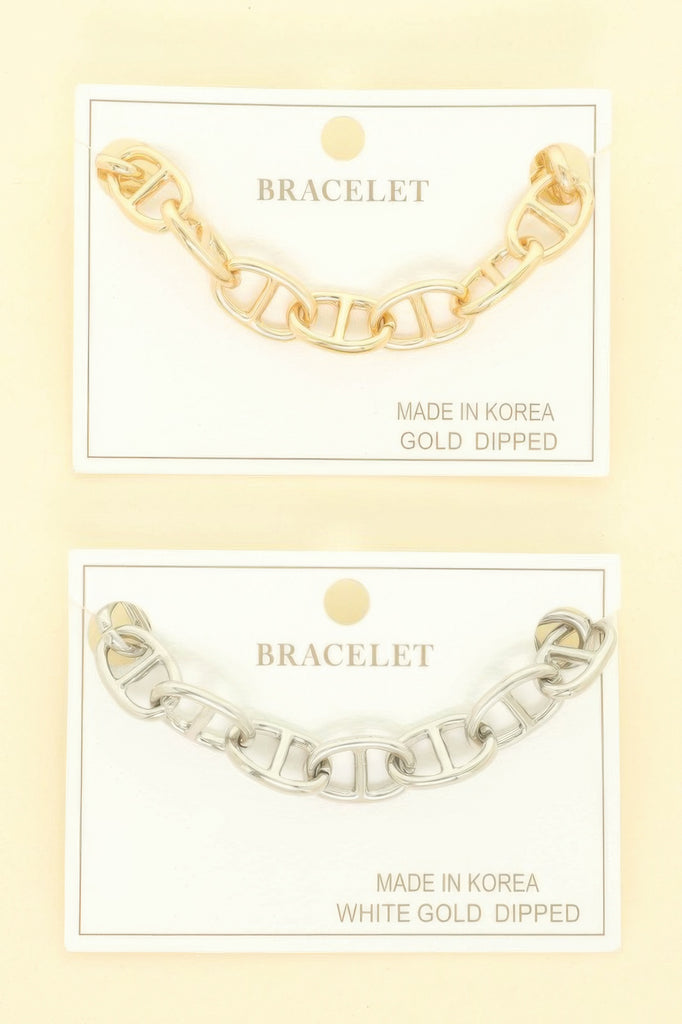 A modern classic, the Gold Plated Chain Link Bracelet offers timeless style with polished links in white or yellow gold plating. Made in Korea, this sleek accessory transitions seamlessly from workdays to weekends. The flexible design and adjustable clasp provide comfort and versatility, making it a reliable addition to your daily jewelry collection.