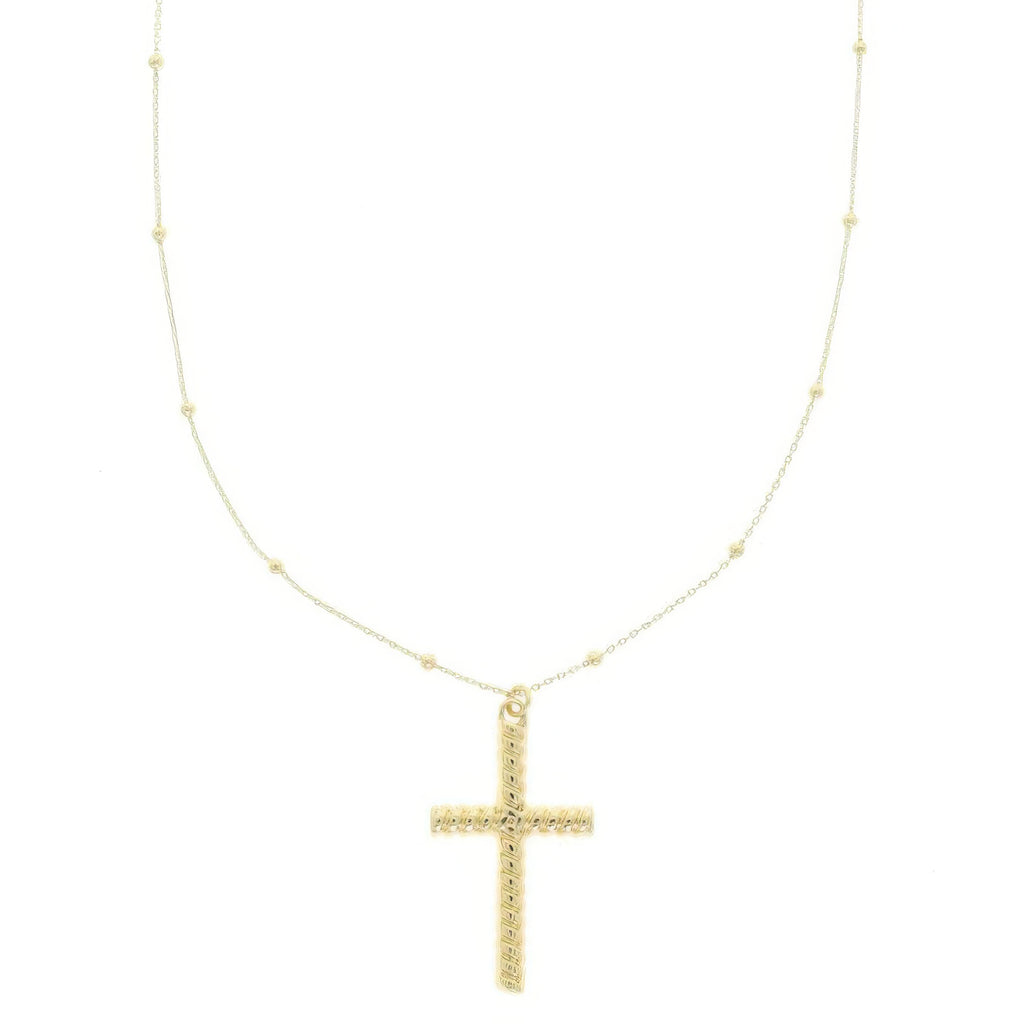 Embrace faith with this ribbed cross pendant necklace, crafted with a delicate beaded chain in your choice of gold or silver-tone metal. Its textured cross design offers a modern take on a meaningful classic, perfect for layering or wearing alone. Lightweight and adjustable, this piece is ideal for daily wear, special occasions, or gift-giving moments. Whether it's a birthday, confirmation, or graduation, this necklace offers a subtle yet powerful expression of devotion and grace. A thoughtful accessory for spiritual women of all ages.