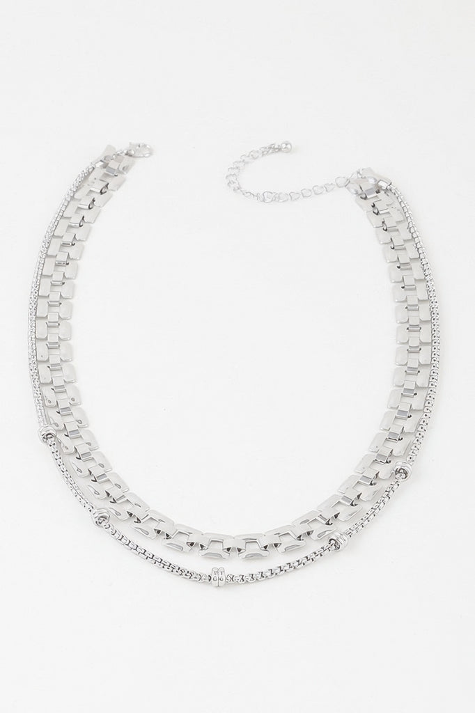 Sleek and minimal, the Double Box Chain Necklace offers clean lines and everyday shine. With two box chains layered into one, it provides subtle dimension while staying lightweight. A modern staple for effortless styling.